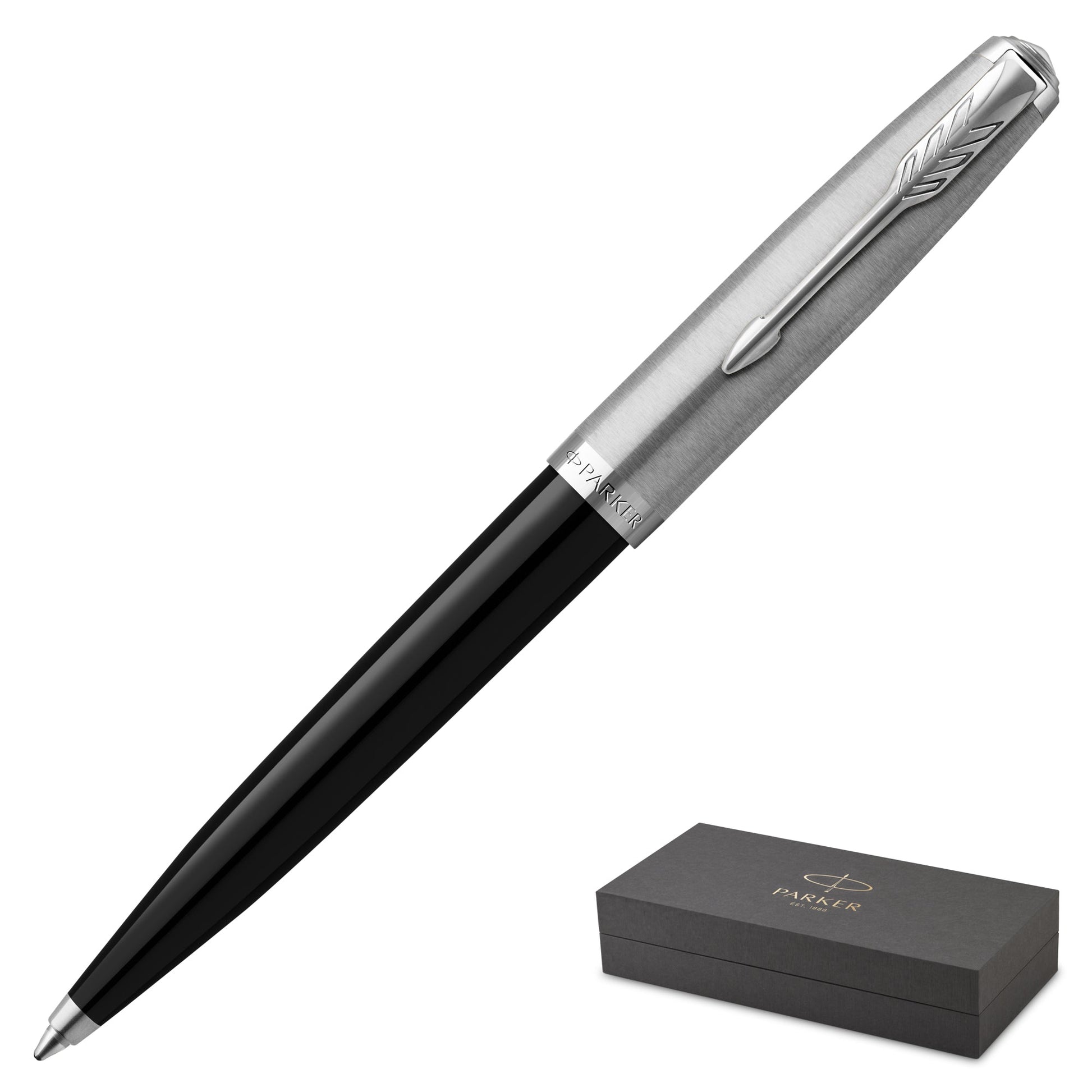 The Parker 51 Black Chrome Trim Ballpoint Pen is a sophisticated blend of timeless design and modern functionality. Its sleek black lacquer finish, accented by polished chrome trim, creates a writing instrument that exudes elegance and professionalism. Equipped with a medium-point tip, this pen ensures smooth, consistent black ink flow, making it perfect for everyday writing tasks, whether in the office or on the go. The Parker 51 Ballpoint Pen is designed for those who value quality and style in their writing tools. Presented in an elegant gift box, it's an ideal choice for professionals, students, and pen enthusiasts alike.