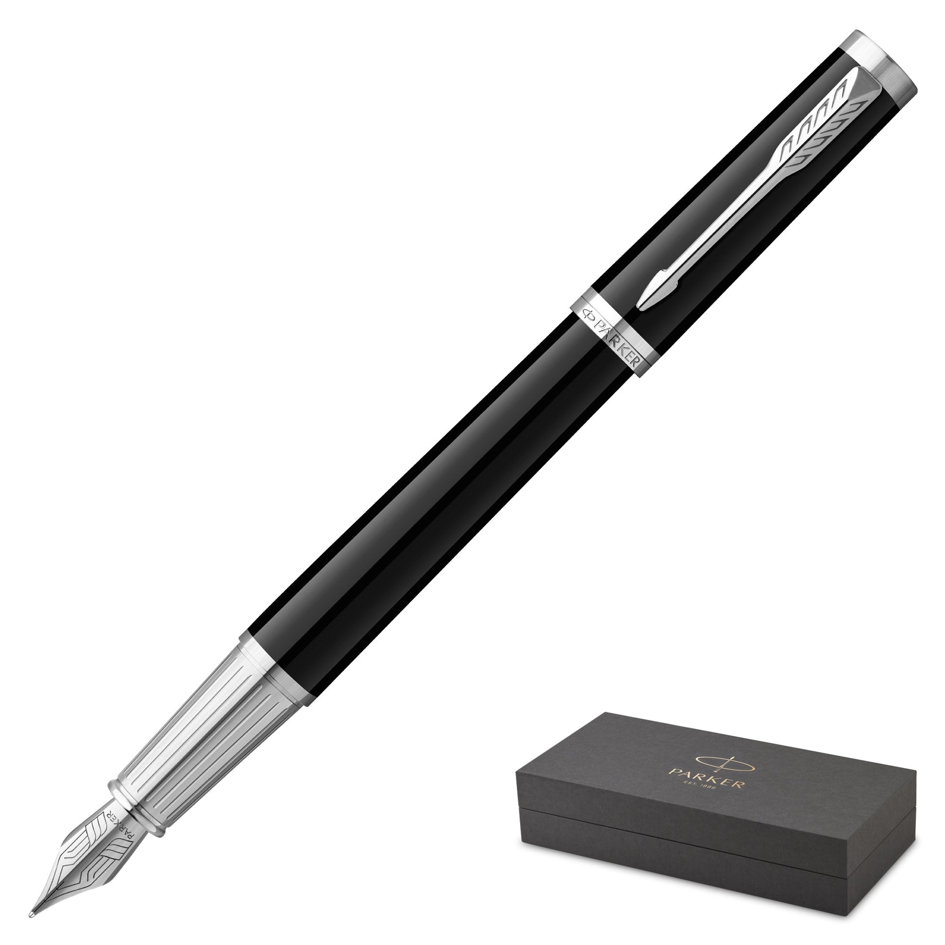 The Parker Ingenuity Black Chrome Trim Fountain Pen combines bold design with cutting-edge writing technology. Featuring a sleek black lacquer finish, accented by polished chrome trim, this pen exudes modern elegance. The medium nib is designed to deliver smooth and consistent ink flow, making it ideal for signing important documents or journaling. Known for its ergonomic balance, the Parker Ingenuity offers both comfort and precision, ensuring an exceptional writing experience during extended use. Presented in an elegant gift box, this pen is perfect for professionals, students, or anyone who values luxury and performance in their writing instruments.