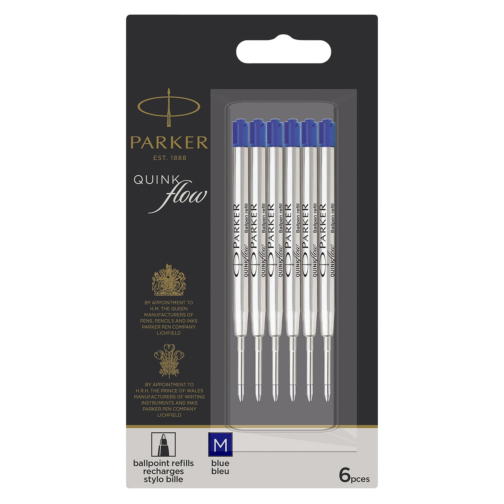 Parker Quinkflow Ballpoint Pen Refill in blue ink with a medium tip 6 Pcs
