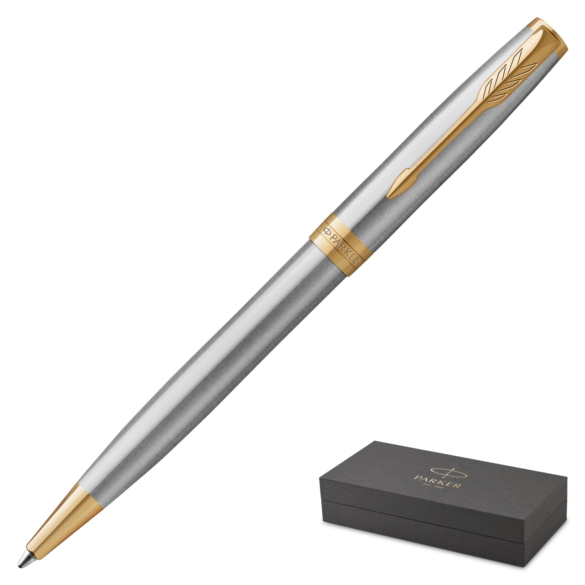 The Parker Sonnet Stainless Steel Gold Trim Ballpoint Pen combines timeless design with modern craftsmanship, offering a writing experience that is both elegant and reliable. Featuring a sleek stainless steel barrel, accented by luxurious gold trim, this pen exudes sophistication, making it ideal for both professional and personal use. The medium-point tip ensures smooth and consistent black ink flow, perfect for everyday writing tasks such as signing documents or taking notes. Known for its balance and comfort, the Parker Sonnet is crafted for extended use and is designed to make a statement in any setting. Presented in an elegant gift box, this pen makes a thoughtful gift for professionals or anyone who values high-quality writing instruments.