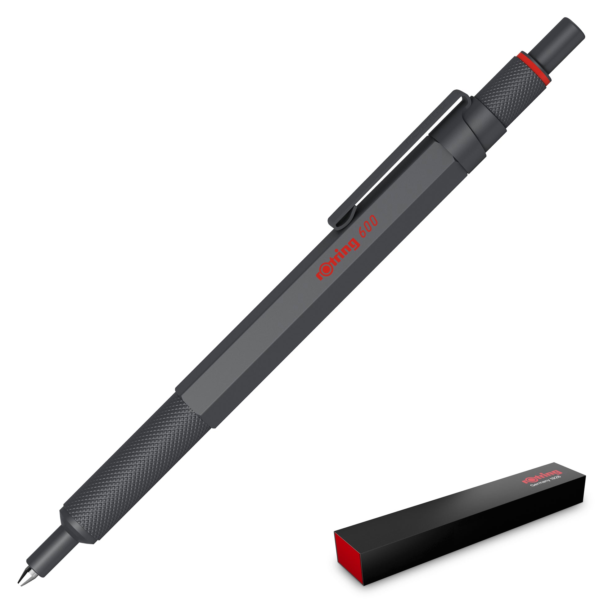 The rOtring 600 Graphite Metal Ballpoint Pen showcases the legendary engineering excellence of the iconic 600 series in a sophisticated graphite finish. Featuring a sleek dark gray metallic coating that evokes the lustrous appearance of natural graphite, this pen delivers both professional aesthetics and uncompromising performance. Built with precision-machined brass construction and medium-point ballpoint technology, the 600 provides consistent black ink flow ideal for technical drawing, professional writing, and detailed sketching. The signature hexagonal barrel prevents rolling and ensures fatigue-free extended use, while the precision-knurled grip section offers secure, non-slip handling. Designed with German engineering heritage for lifetime reliability, this click-to-retract ballpoint is airplane-safe and accepts standard Parker-style refills. Presented in premium packaging, the rOtring 600 Graphite is perfect for architects, engineers, designers, and professionals who demand superior writing instruments that reflect their commitment to precision and quality.