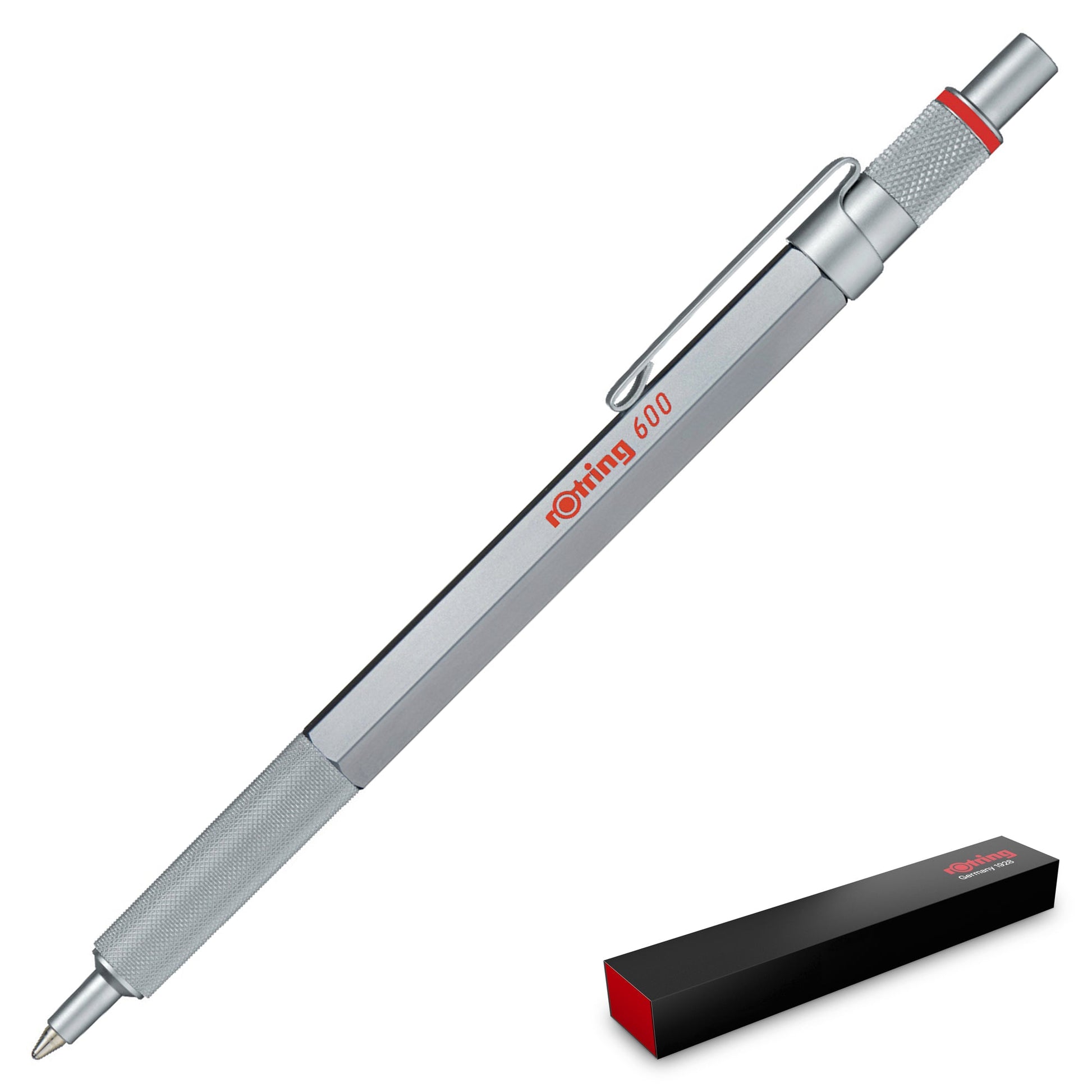The Rotring 600 Silver Ballpoint Pen is a professional-grade writing instrument, known for its precision and durability. Featuring a sleek silver hexagonal barrel, this pen is designed for stability and control, making it perfect for technical writing, sketching, or everyday use. The medium-point tip ensures smooth, consistent black ink flow, providing a reliable writing experience. The robust metal body and iconic knurled grip offer enhanced comfort and control, making the Rotring 600 a favorite among engineers, architects, and designers. Presented in an elegant gift box, this pen is perfect for those who demand both style and functionality.
