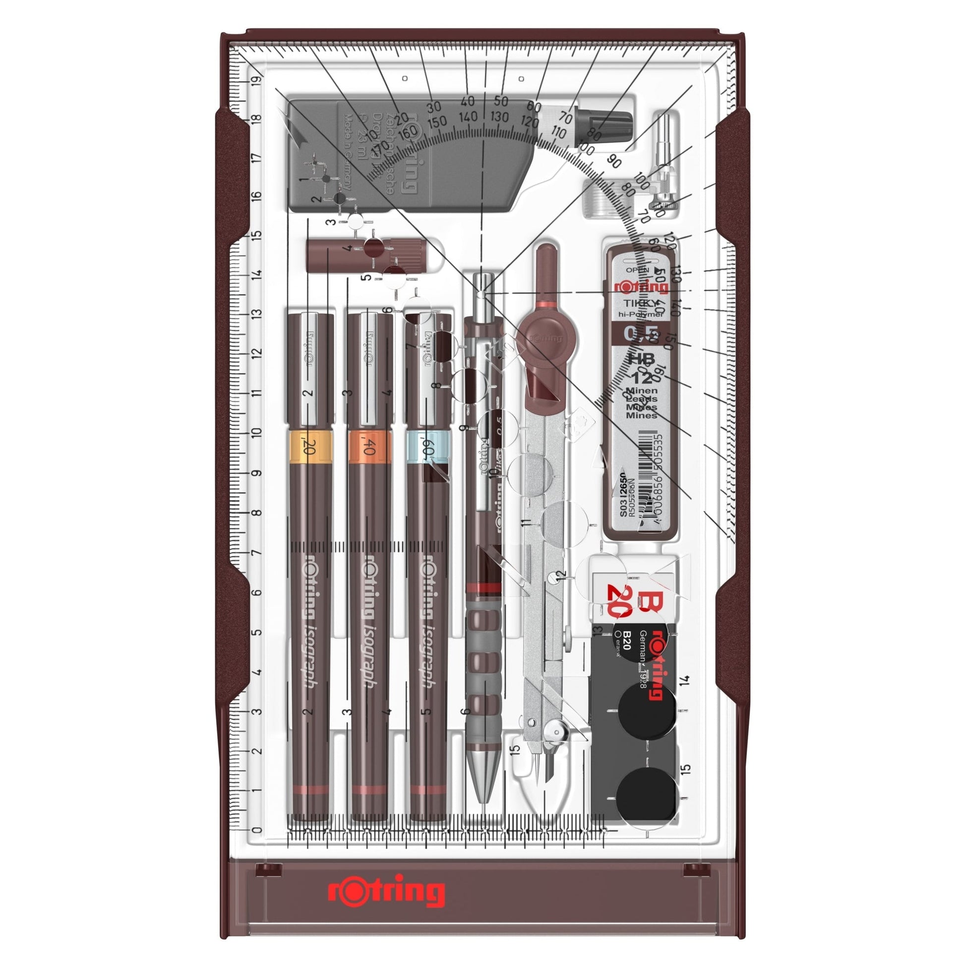 - Includes three Isograph pens with nib sizes of 0.2mm, 0.4mm, and 0.6mm