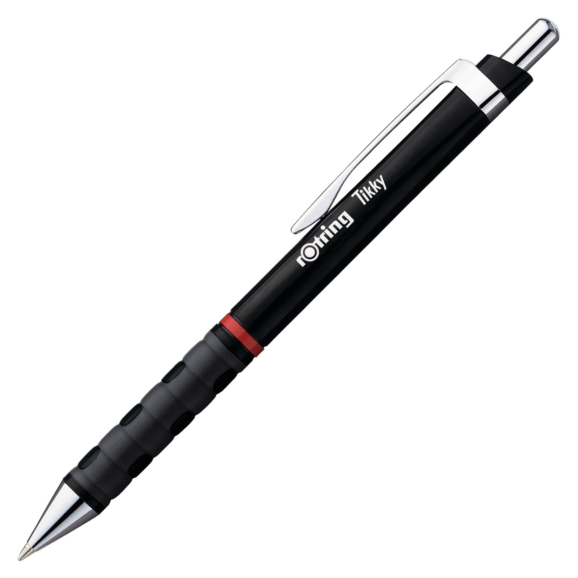 The Rotring Tikky Ballpoint Pen in black combines ergonomic design with functionality, making it an excellent choice for everyday writing. Its lightweight plastic body has a triangular barrel and a Softtouch rubberized grip, ensuring comfort during long writing sessions. This retractable ballpoint pen delivers smooth, consistent ink flow, making it both pocket- and airplane-safe. The durable clip and precision-engineered brass mechanism add to the pen's reliability, while its medium point creates crisp, clear lines. Ideal for students, professionals, and creatives alike, the Tikky pen brings a blend of precision and ease to your writing experience.