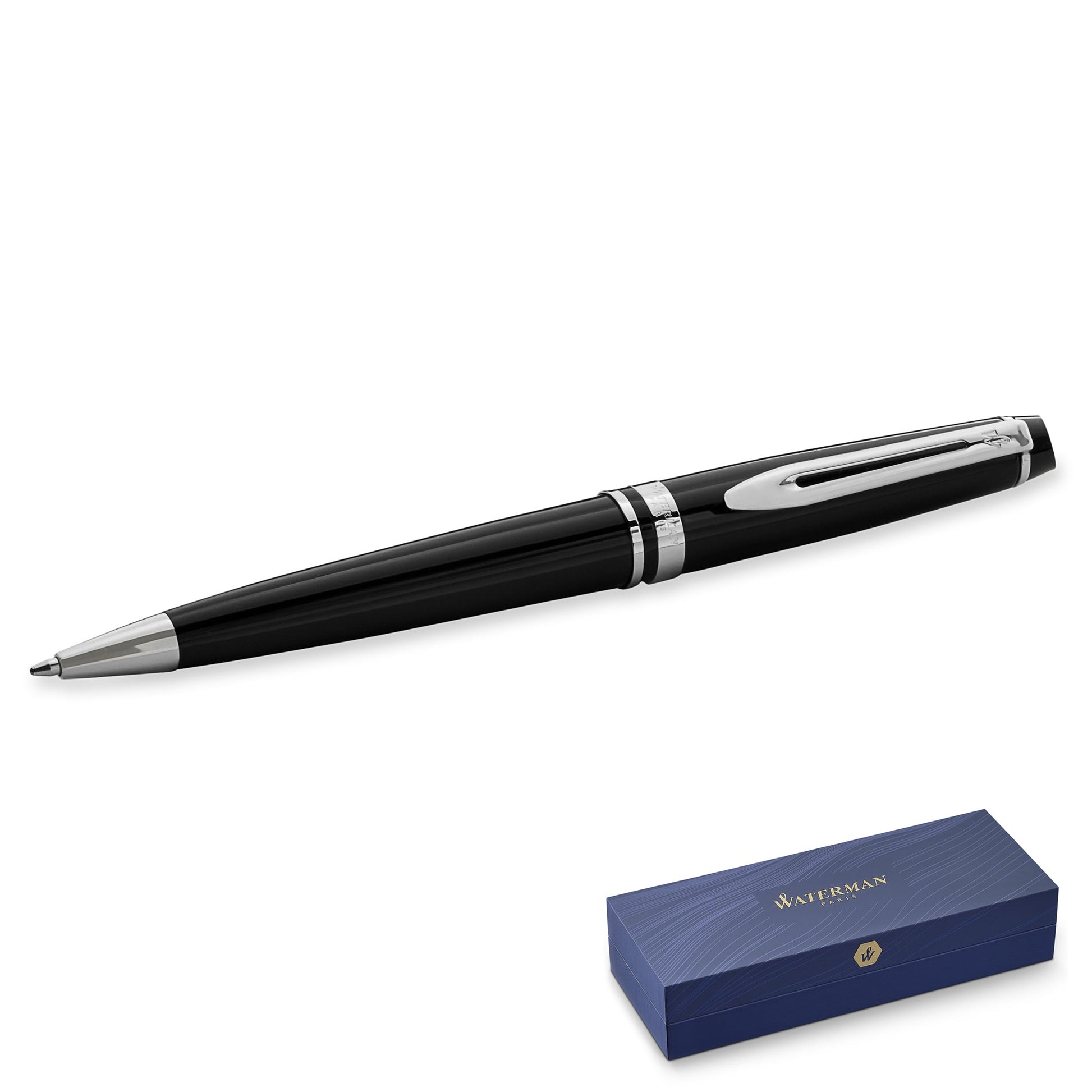 Elevate your everyday writing with the Expert Black Chrome Trim Ballpoint Pen. This pen exudes sophistication, featuring a sleek black lacquer finish beautifully contrasted by polished chrome trim. Crafted for those who demand both style and performance, this pen offers a smooth and reliable writing experience with its medium-point blue ink. Whether you're signing important documents or jotting down notes, the Expert Black Chrome Trim Ballpoint Pen ensures that every word is written with precision and elegance. Housed in an elegant gift box, it makes an excellent choice for both personal use and gifting.